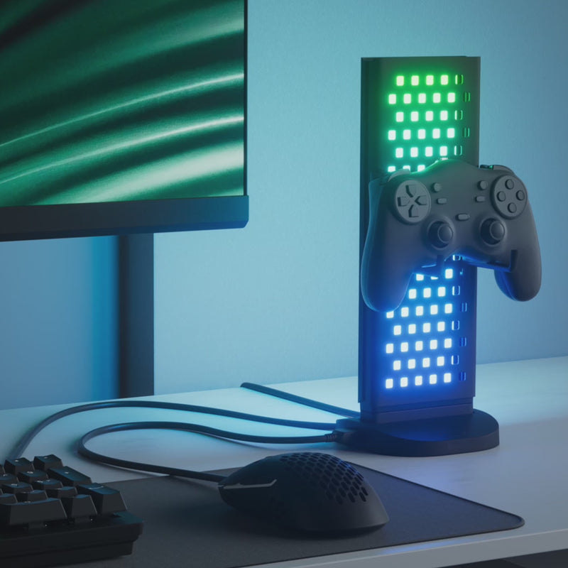 Use the light pegboard side to store & display accessories for easy access, or turn 180º for mesmerizing full-faced lighting effects. Plus: Charge, power, and connect your peripherals and other devices with the USB Hub Base for clean cable management and a seamless simplified setup.